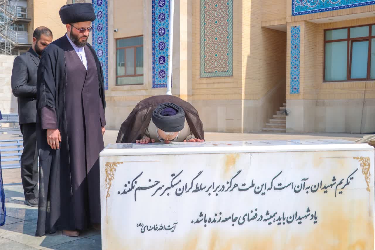 حضور آیتالله مهدوی؛ عضو خبرگان رهبری و امام جمعه موقت اصفهان در مدینةالعلم کاظمیه و ادای احترام به مقام شامخ شهید گمنام